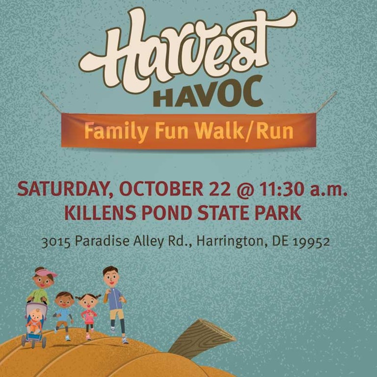 Family Fun Walk/Run at Killens Pond State Park. Saturday, October 22nd at 11:30 a.m.